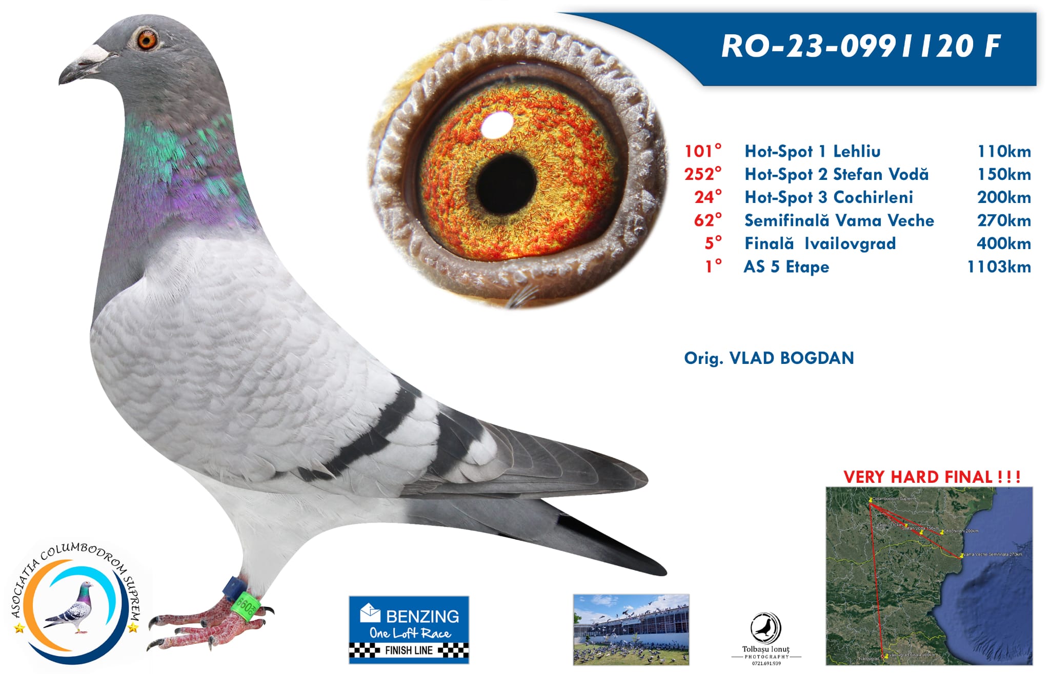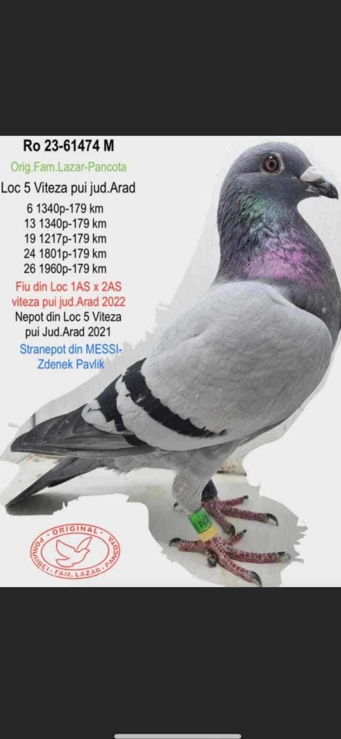 Tata lu 991120-23 loc 1 AS 5 etape OLR suprem 2023 și loc 5 finala 400km (5 porumbei sosiți in prima zi) din 1250 por la start și 256 crescatori